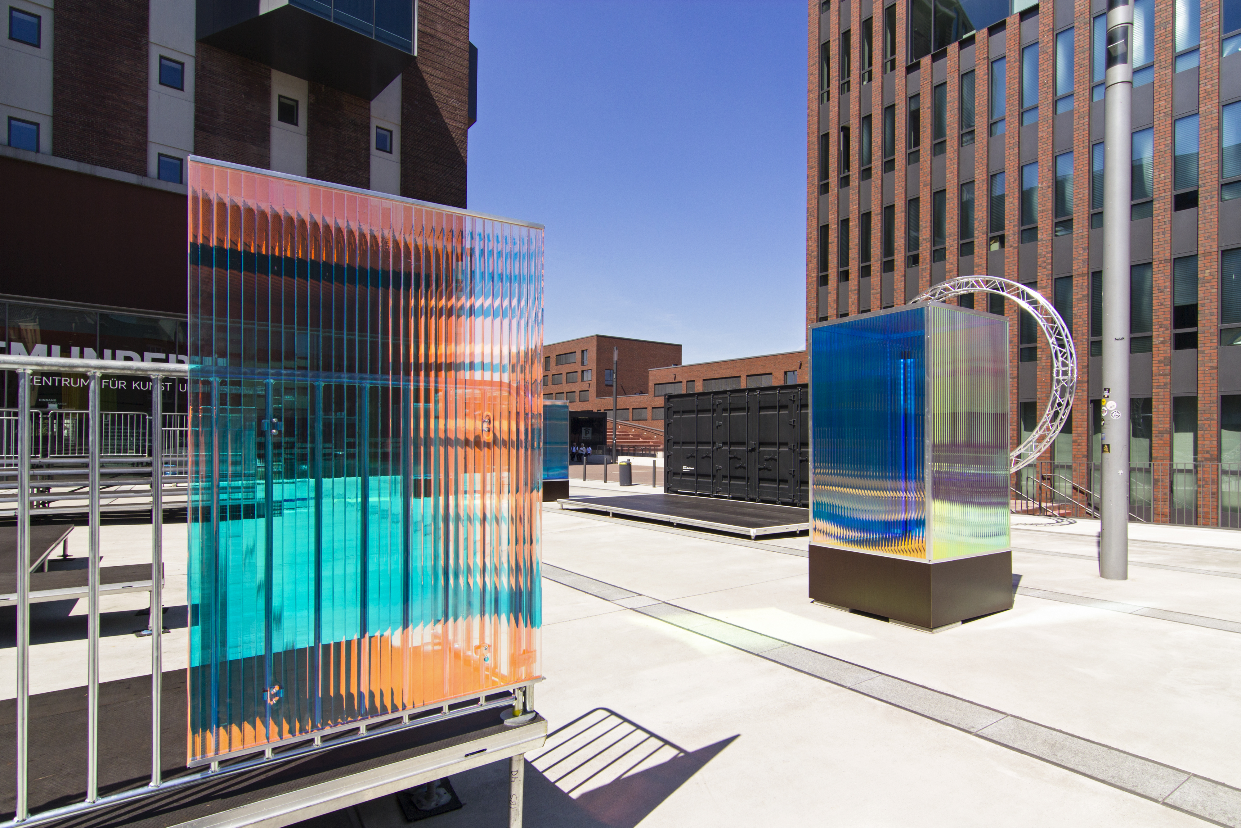 Der Sommer am U ist eine Veranstaltungsreihe über mehrere Monate mit Konzerten, Lesungen und Poetry-Slams auf dem Vorplatz des Dortmunder U. In einer neuen, postmodernen Vision mit kühler und anziehender Inszenierung, futuristischen Elementen und schillernden Lichteffekten inspiriert von Science-Ficiton Filmen, präsentiert sich der Vorplatz in seinem neuen Gewand. Die matt-schwarzen Container werden zur Bühne, die Besucher:innen sitzen auf Tribünen.