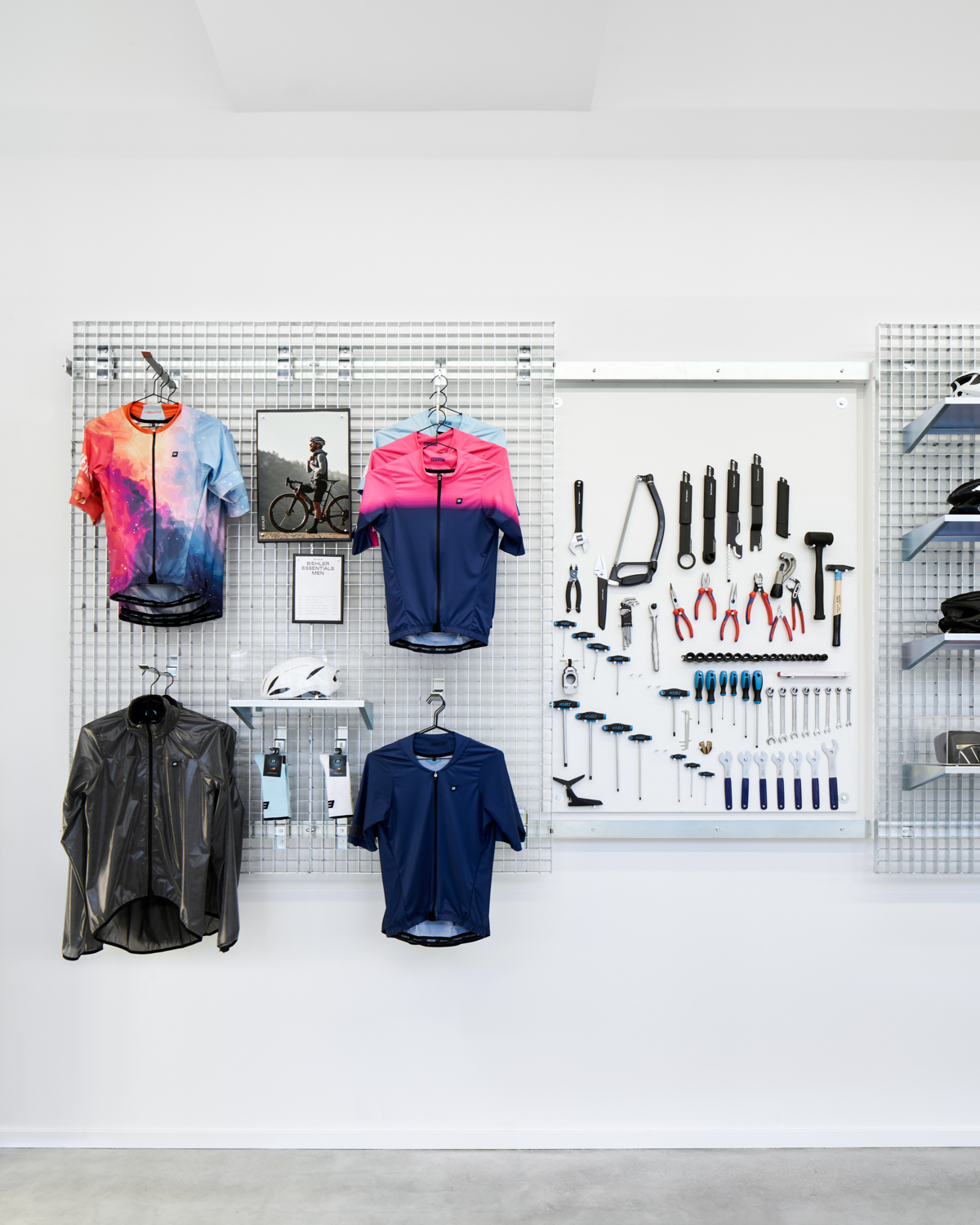 NEW ØRD3R ist ein Fahrradladen auf der Karl-Marx-Allee in Berlin, welcher alle drei Monate seine gesamte Kollektion wechselt. Alle Displays und Möbel sind flexibel und können jederzeit neu angeordnet werden. Mit den verschiedenen Produktträgern können sowohl kleine Produkte, als auch ganze Fahrräder ausgestellt werden. Durch das eigene große Lager in unmittelbarer Nähe, schließt NEW ØRD3R die Lücke zwischen der Produktverfügbarkeit des Online-Handels und der Beratung im stationären Handel. Grafikdesign: Adlips Design Fotos: Annika Feuss