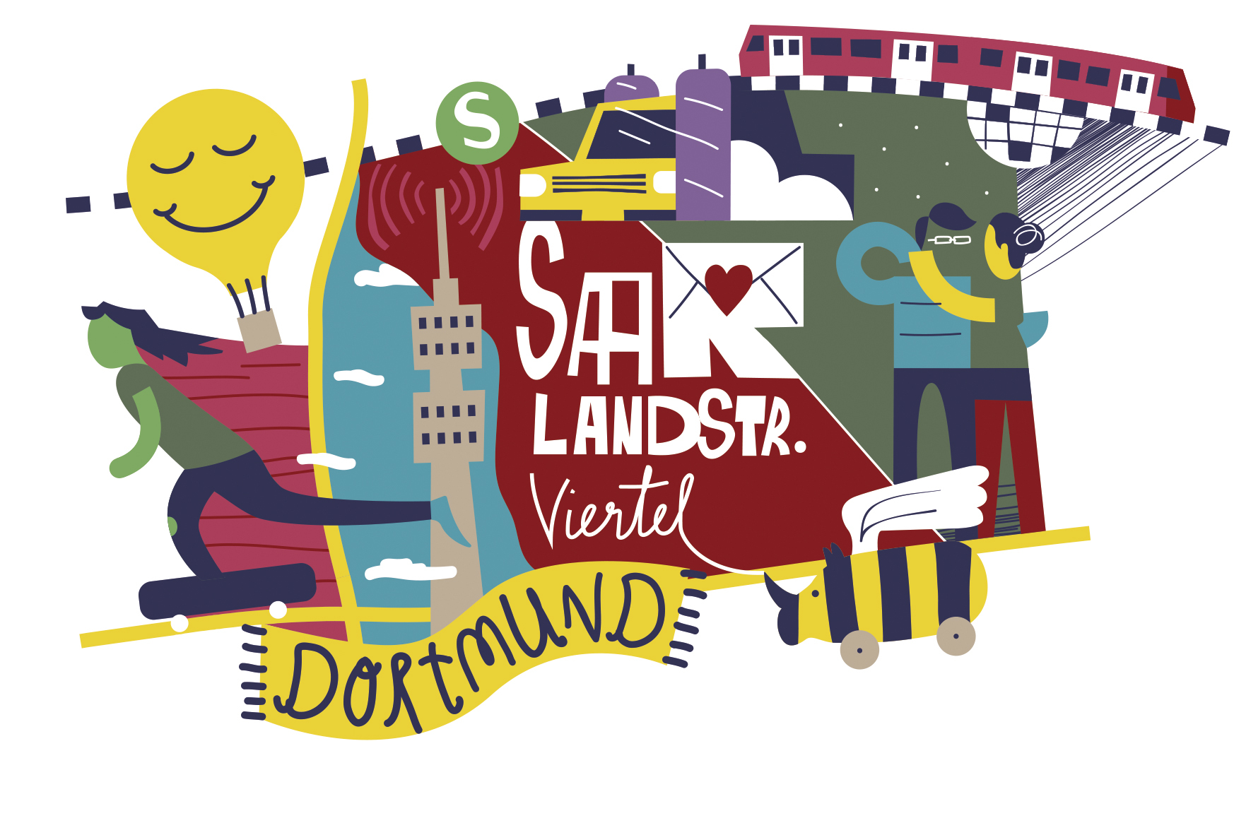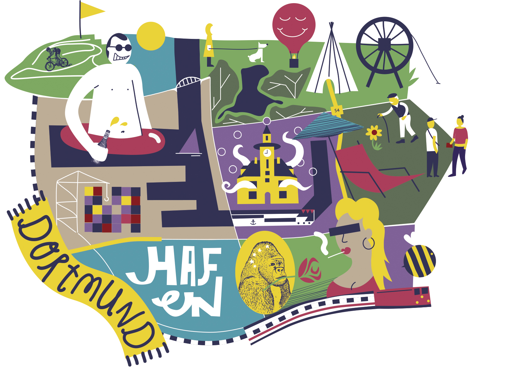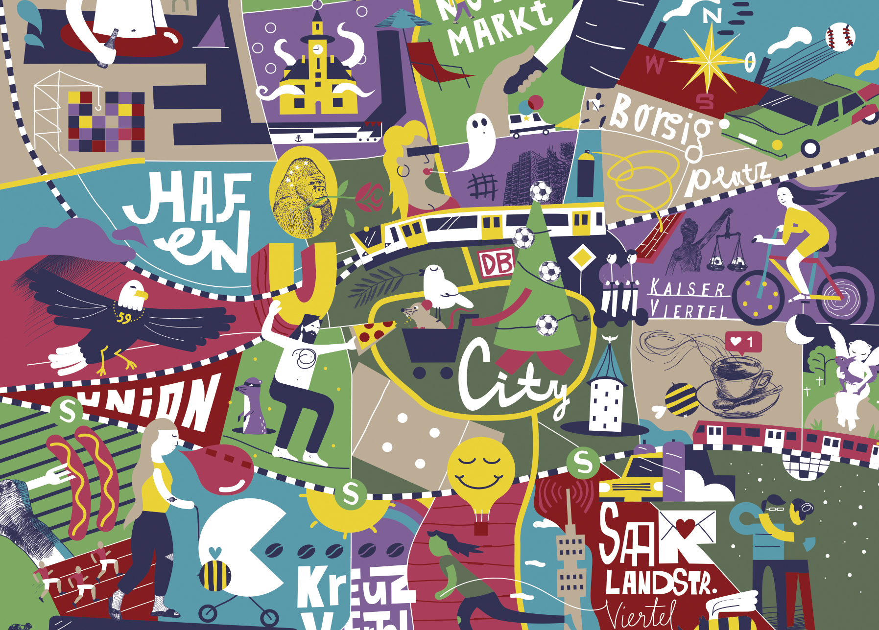 Ein bunt illustrierter Stadtteilplan für Orientierungslose.