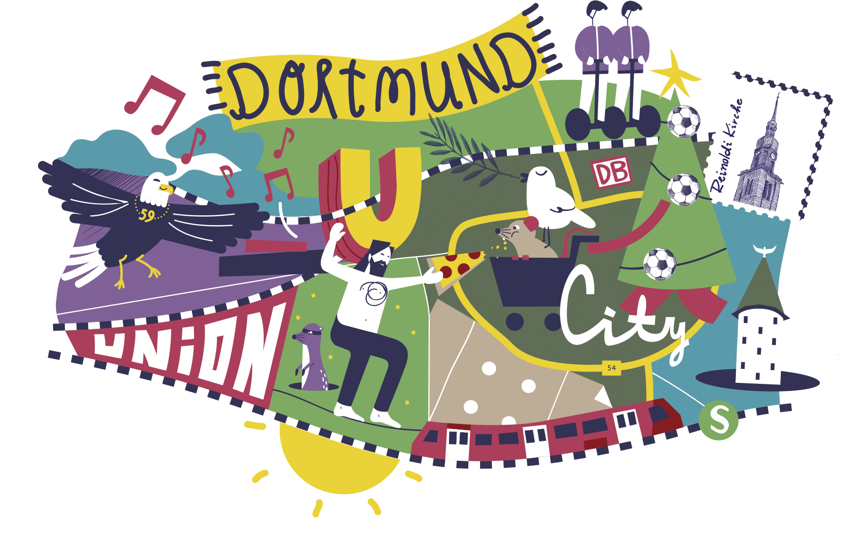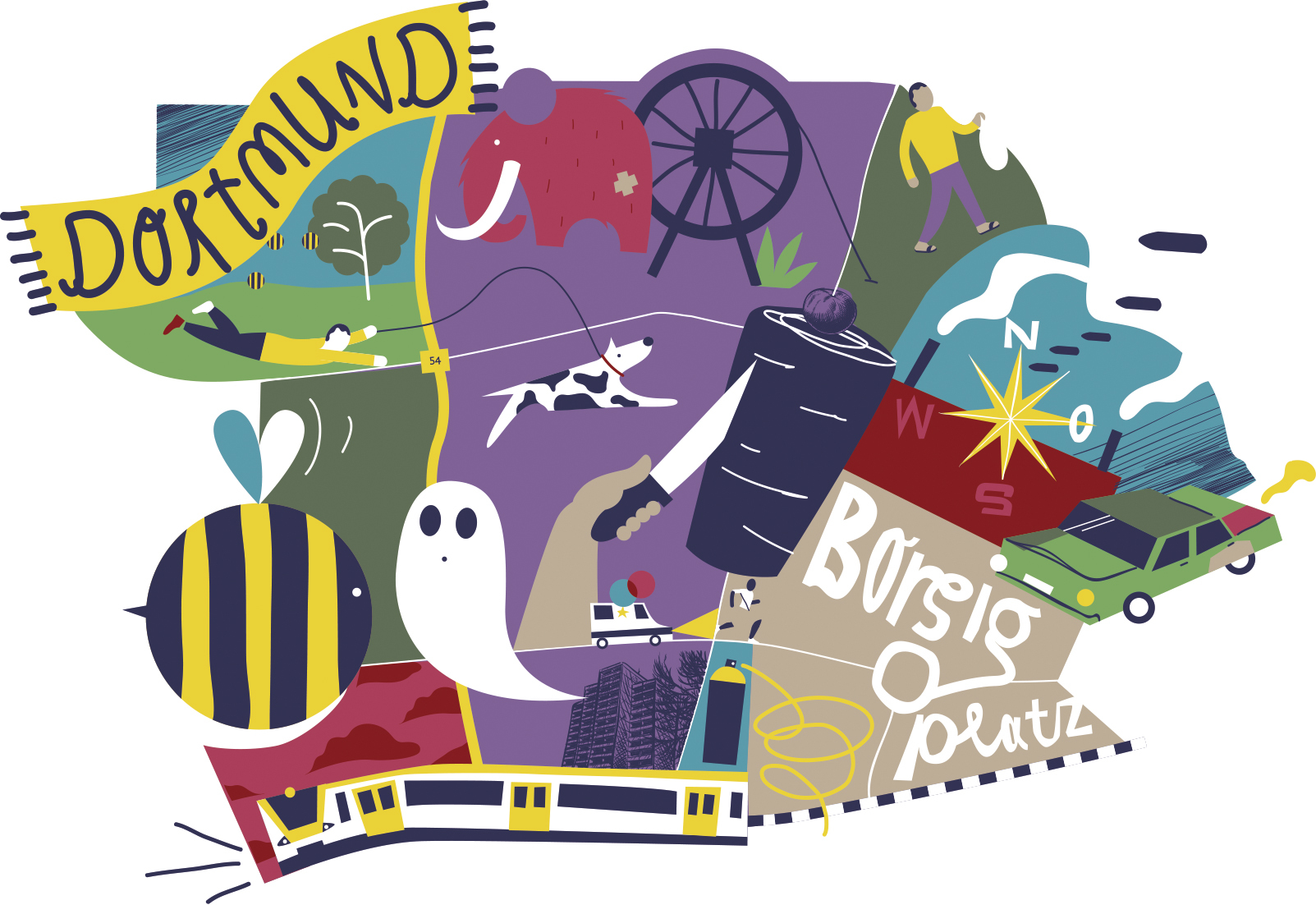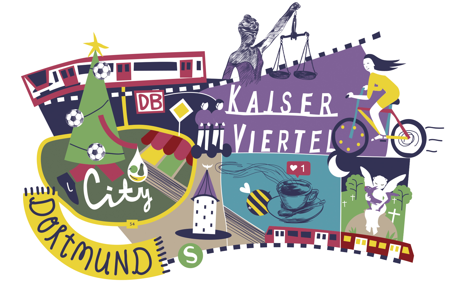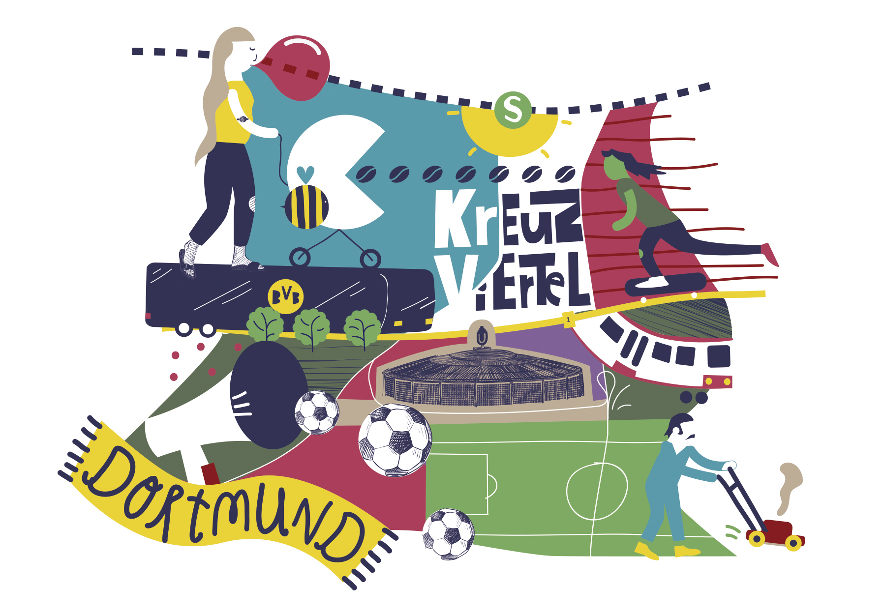Ein bunt illustrierter Stadtteilplan für Orientierungslose.