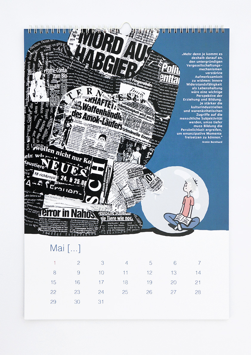 Der VdP (Verband der Pädagogiklehrerinnen und Pädagogiklehrer) hat uns beauftragt einen immerwährenden Kalender zu entwerfen. Thema des Kalenders: prägnante Zitate aus dem Pädagogikbereich Anwendung: Diskussionsgrundlage für den Pädagogikunterricht