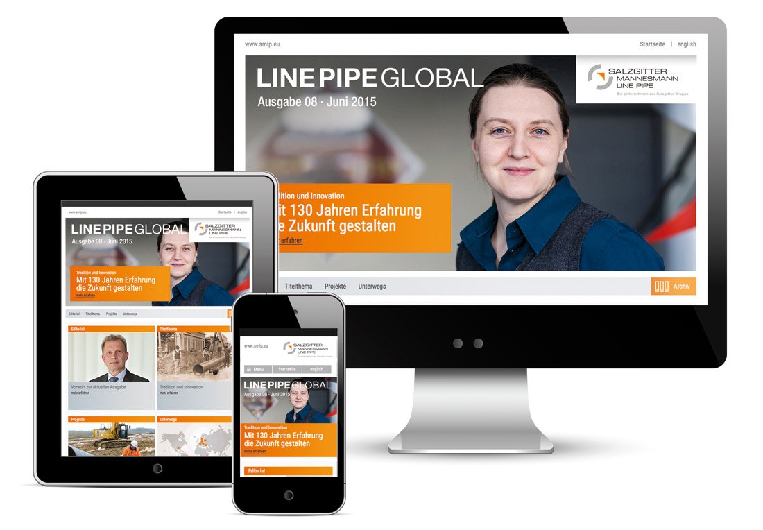 Seit über 130 Jahren steht der Name Mannesmann weltweit für qualitativ hochwertige Stahlrohre "Made in Germany". Mannesmann Line Pipe mit Standorten in Siegen und Hamm wird seit 2006 durch Kümpel Lorenz betreut. Stand zunächst das Thema „interne Kommunikation“ im Vordergrund der Aufgaben, ist es inzwischen das Kundenmagazin „Line Pipe Global“. 2007 erstmals als Printausgabe erschienen, wurde es später um eine responsive Online-Ausgabe ergänzt. Kümpel Lorenz ist für die Redaktion, Gestaltung und Umsetzung der zweisprachigen Ausgaben in Print und Web verantwortlich.