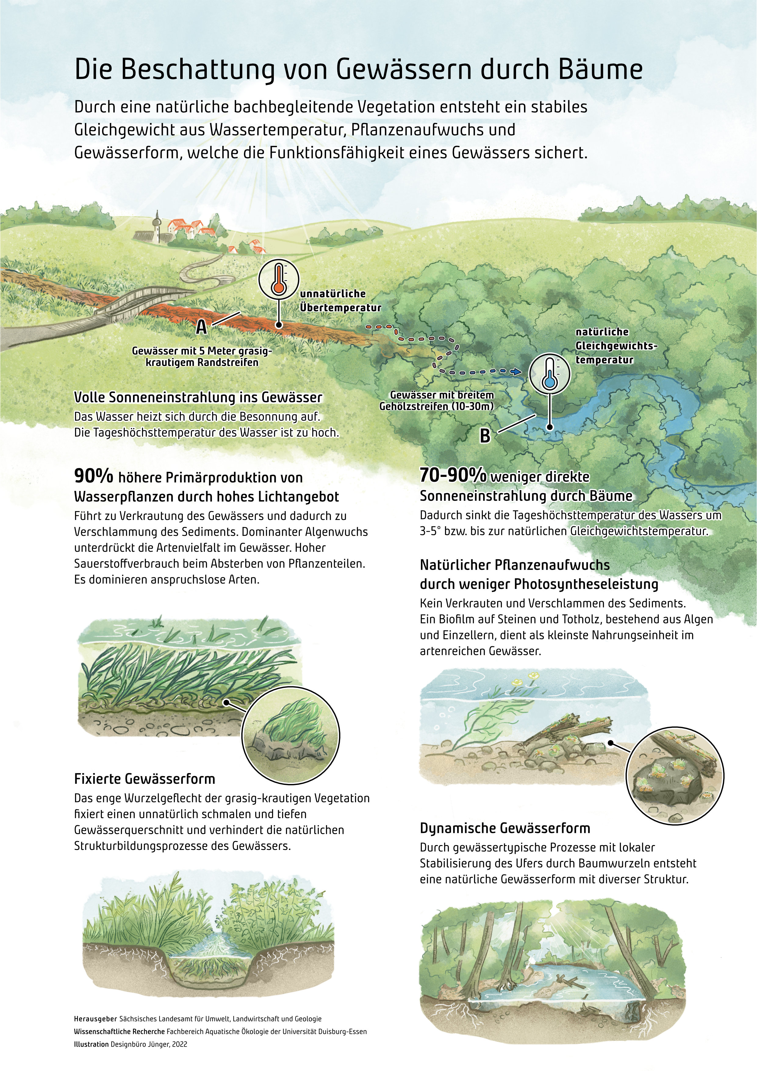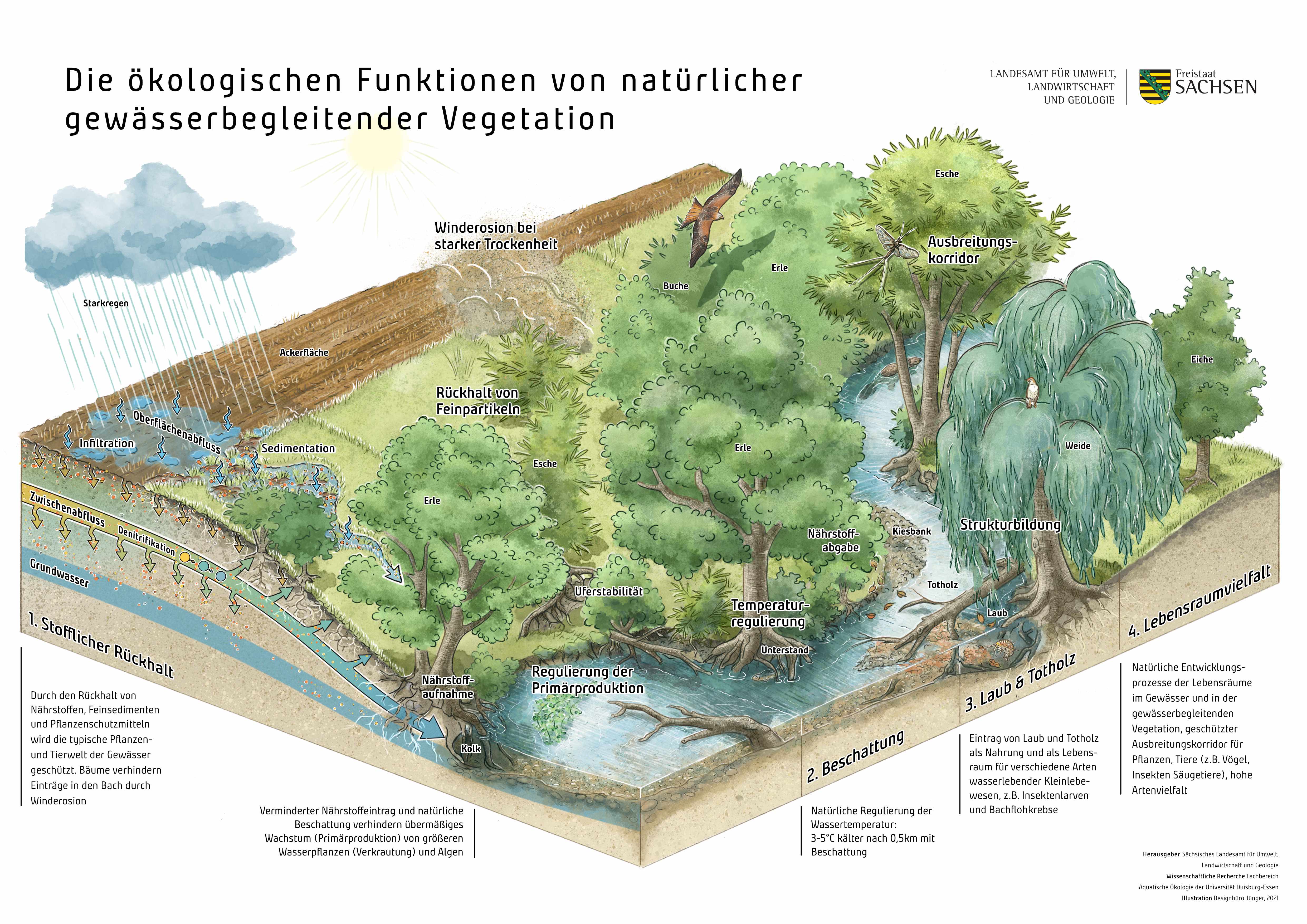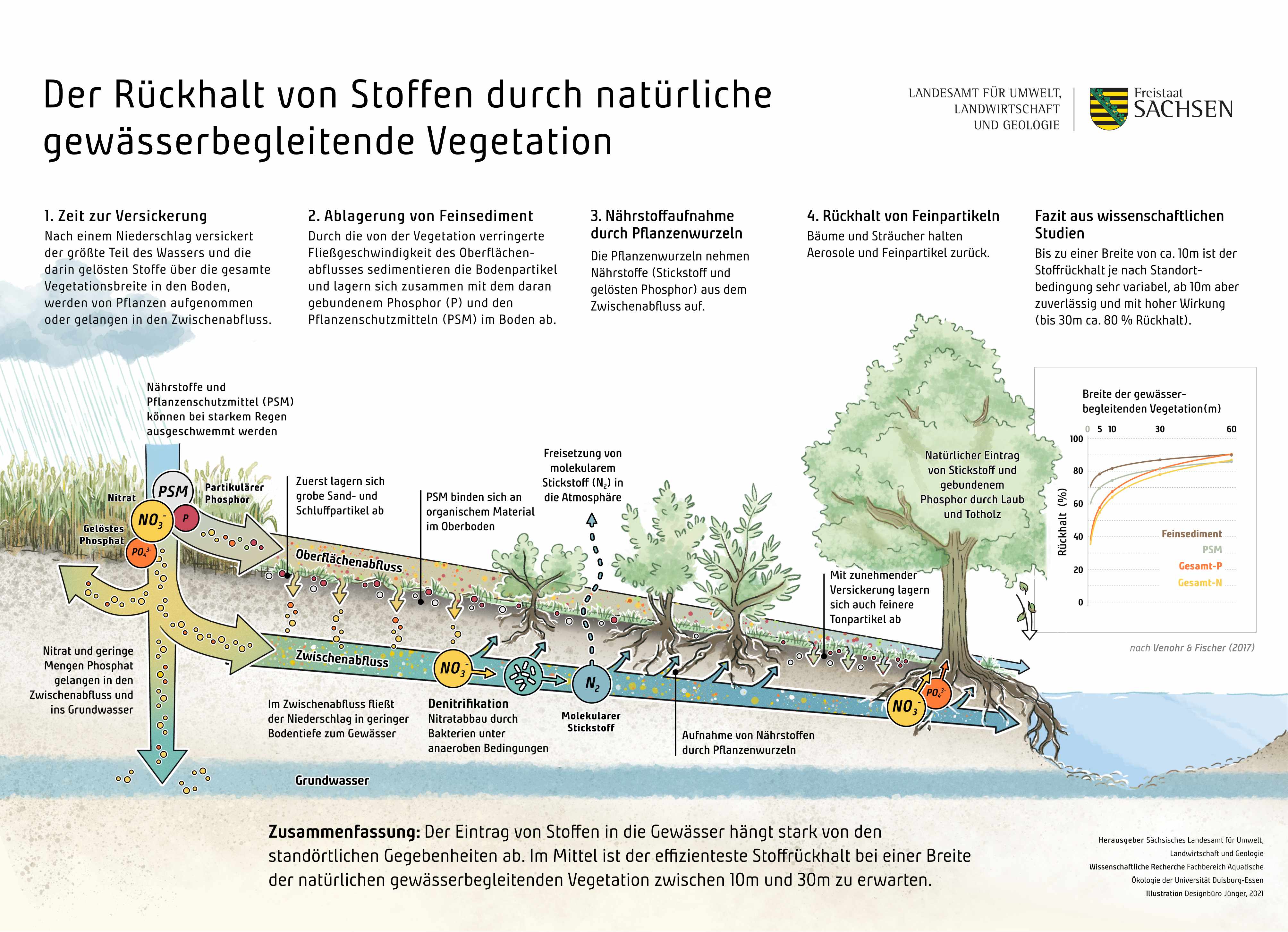 Illustrationen und Infografiken zur Darstellung der Ergebnisse eines wissenschaftlichen Forschungsprojekts der Uni Duisburg-Essen für das Landesamt für Umwelt, Landwirtschaft und Geologie, Sachsen