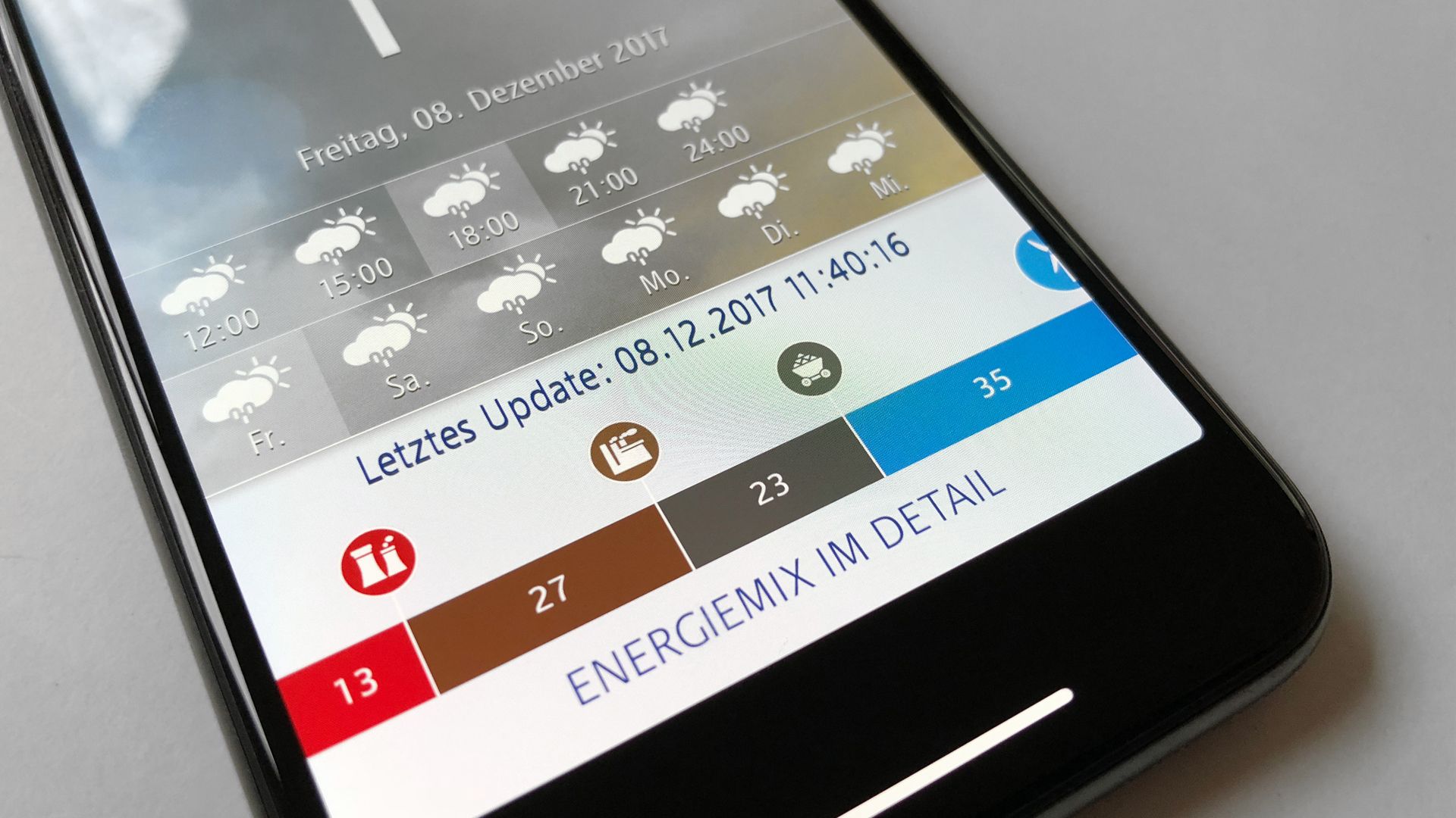 Was wäre, wenn ich den Energiemix beeinflussen könnte? Einfach ausprobieren, wie das Wetter sein müsste, wenn man selbst den Energiemix beeinflussen könnte. Die Umsetzung: Entwicklung eines Benutzeroberfläche, die auf einen Blick zeigt, welcher Energiemix in Echtzeit benötigt wird um die aktuellen Wetterbedingungen mit dem Bedarf zu decken. Hierzu haben wir ein interaktives Diagramm entwickelt, welches sich auf den lokalen und globalen Wetterdaten, der aktuellen Produktion von erneuerbaren Energiequellen sowie die Produktion der konventionellen Energiequellen aus den Datenbanken der deutschen Strombörse. Das Ergebnis: Der Nutzer kann mit einem Blick sehen, wie sich in Echtzeit der Energiemix in Bezug auf das aktuelle Wetter darstellt. Er hat ebenfalls die Möglichkeit den Mix zu ändern und sieht dann, wie sich das Wetter ändern müsste um den selbst erstellten Energiemix gerecht zu werden. Eine einfach zu verstehende Darstellung einer sehr komplexen Datensammlung einfach erklärt.
